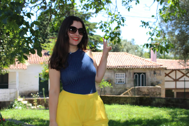 O terceiro look é um look com mais cor e mais prático, uns calções são sempre práticos e estes amarelinhos dão mesmo nas vistas, basta combina-los com uma parte de cima pouco trabalhada e eles são o centro das atenções no look ;)