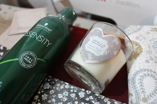 Um shampoo para cabelos secos e uma vela de baunilha;