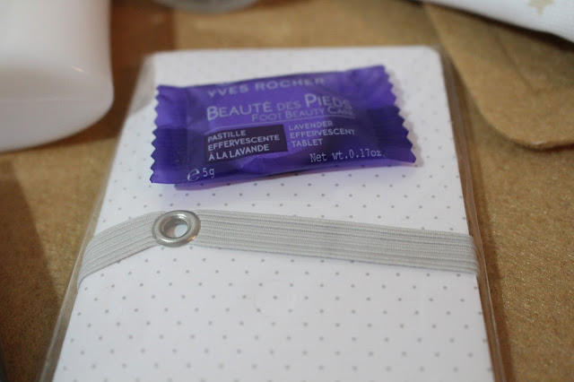 Uma pastilha efervescente para os pés e um bloquinho de notas;
